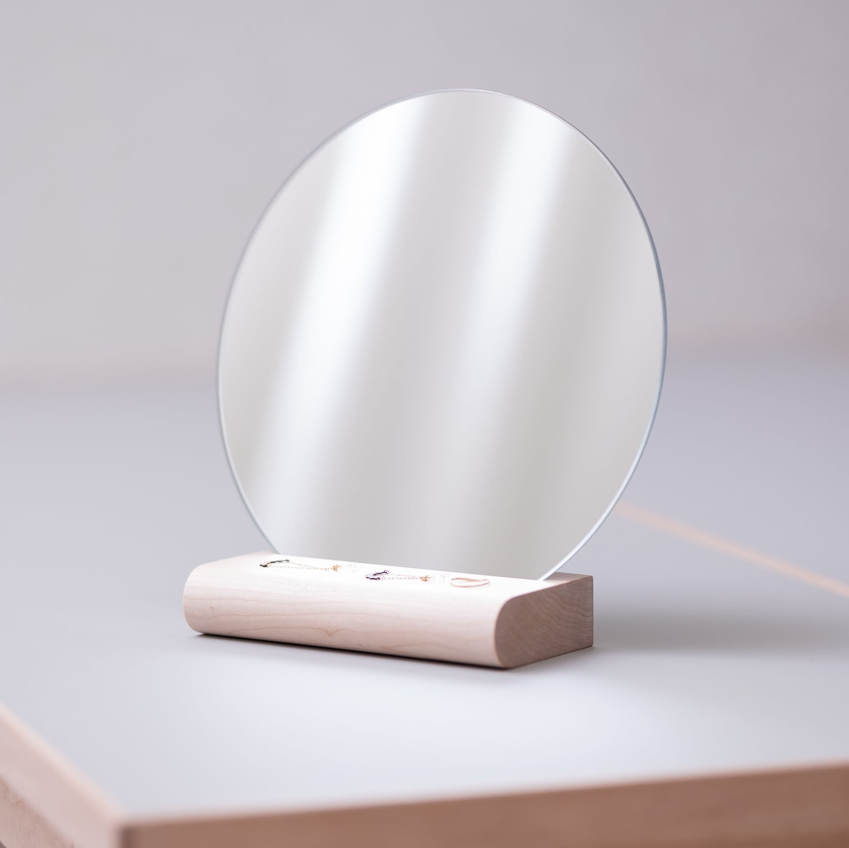 鏡の前のスペースにはアクセサリーなどの小物を置くことができます。