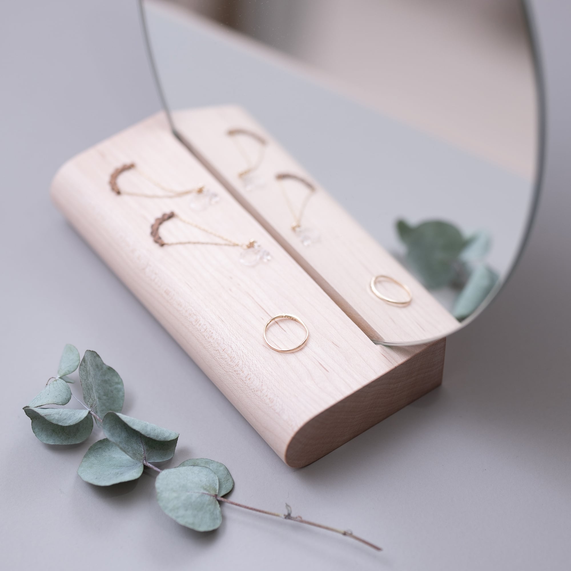 台座は両面リバーシブルで使用でき、鏡の角度を変えられます。